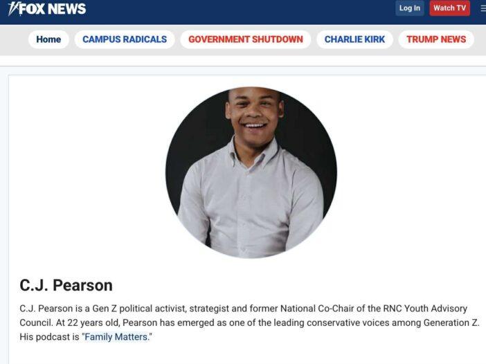 C.J. Pearson, a Gen Z conservative political activist and former National Co-Chair of the RNC Youth Advisory Council, prominently featured on the Fox News website.