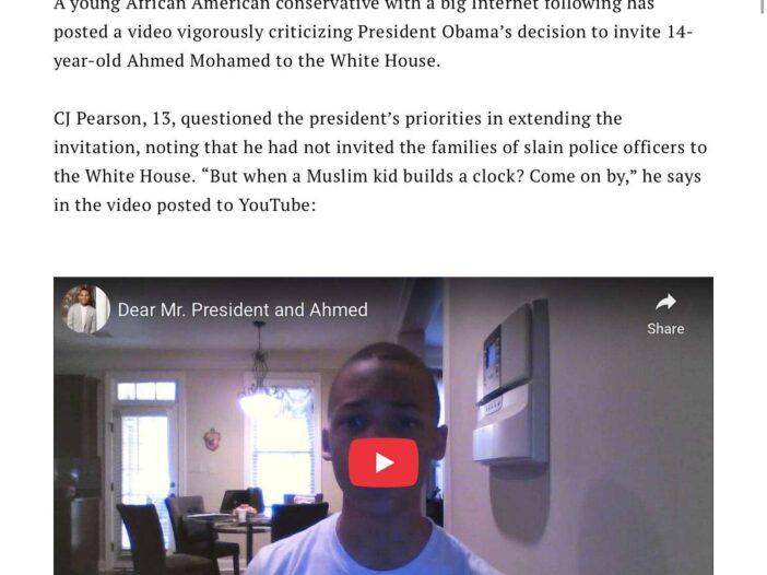 Teen Conservative C.J. Pearson Slams Barack Obama over Ahmed Invitation