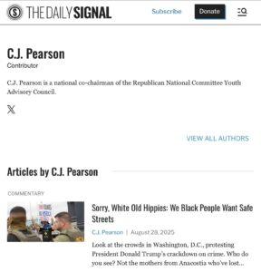 The Daily Signal” features C.J. Pearson, a contributor and national co-chairman of the Republican National Committee Youth Advisory Council, with his written articles.